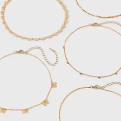 Chain Choker Necklace Set 5pc – Wild Fable™ Gold: Lobster Claw Clasp, Recycled Zinc, 12″ Length