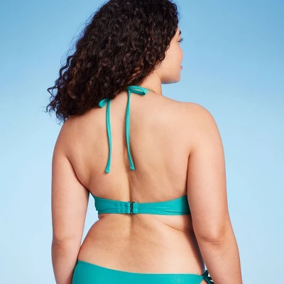 Multicolor bralette bikini top from Wild Fable™ features crochet detailing and colorful beads at the center. Soft and stretchy fabric for comfortable wear. The halter neck design and back hook-and-loop fastener helps keep the top secure. Removable cups offer customizable coverage.