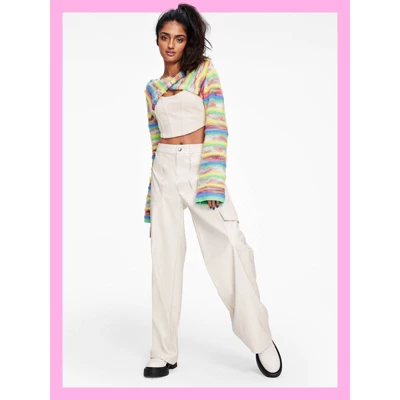 Full-length solid cargo pants from Wild Fable™ in a faux-leather finish. Made from midweight fabric with a hint of stretch. Tailored in a high-rise silhouette with a straight-leg fit. Feature a fly button waistband with belt loop and a zipper. Two cargo pockets on the legs plus patch pockets on the sides and back complete the design.