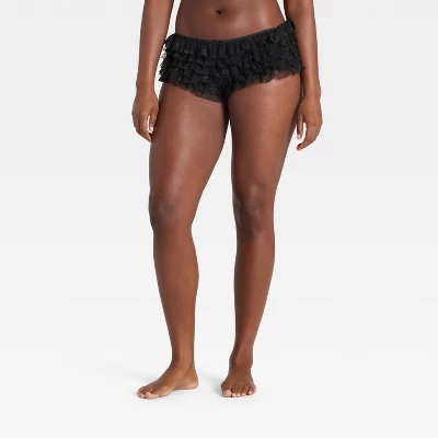 Ruffle lace bloomer from Wild Fable™ with a semi-opaque construction. Made from nylon fabric with spandex for flexible comfort that moves with you. Features tiered lace ruffles, a bow-front accent and a cotton gusset. Pull-on style completes the design with easy on and off.