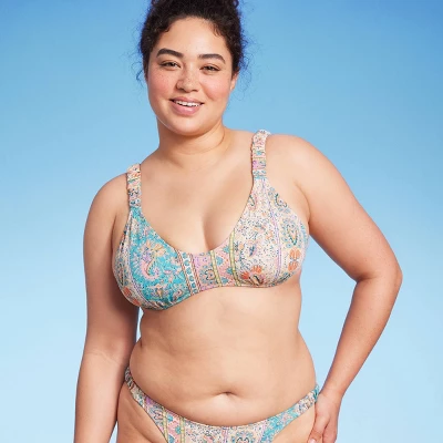 Bralette bikini top from Wild Fable™ adorned with adjustable scrunchie-style shoulder straps. Made of soft, stretchy fabric with removable cups. Back hook-and-loop fastener helps you find a secure fit.